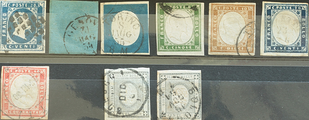 Lotto 83 | Sardegna 1851/63- lotto di 9 francobolli, numeri 2,5,8,13,14,15,16,19,20...