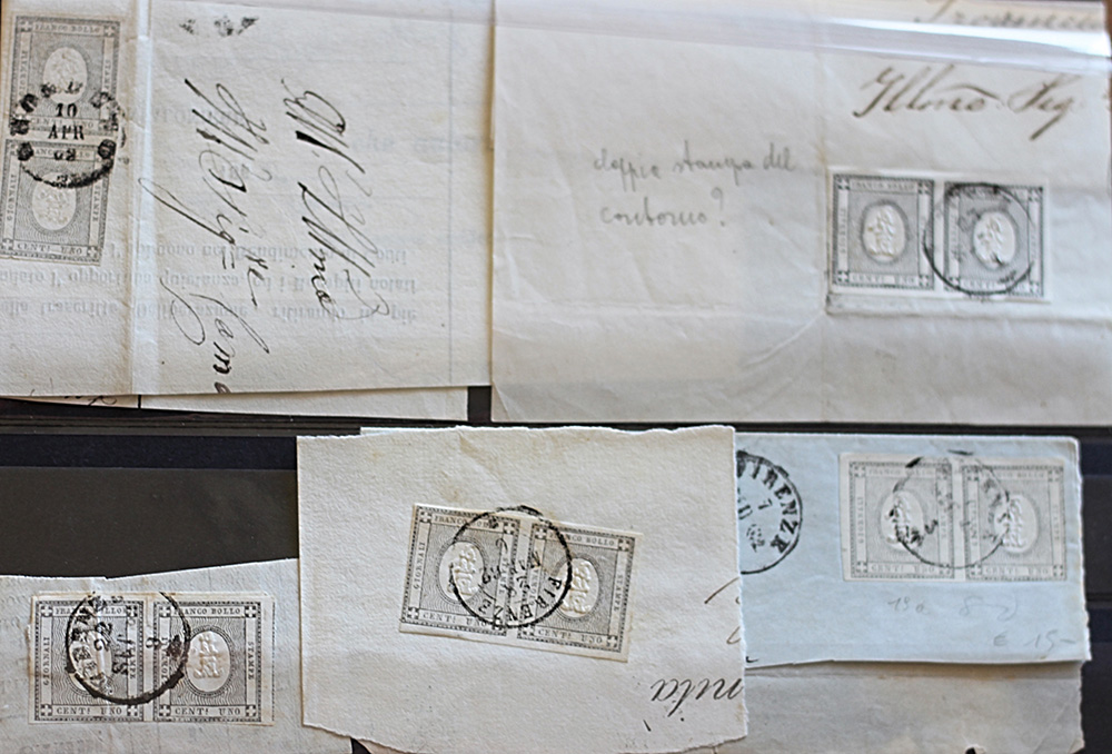 Sardegna 1861-num.19, 5 coppie su frammenti Prezzo di catalogo : 375 €