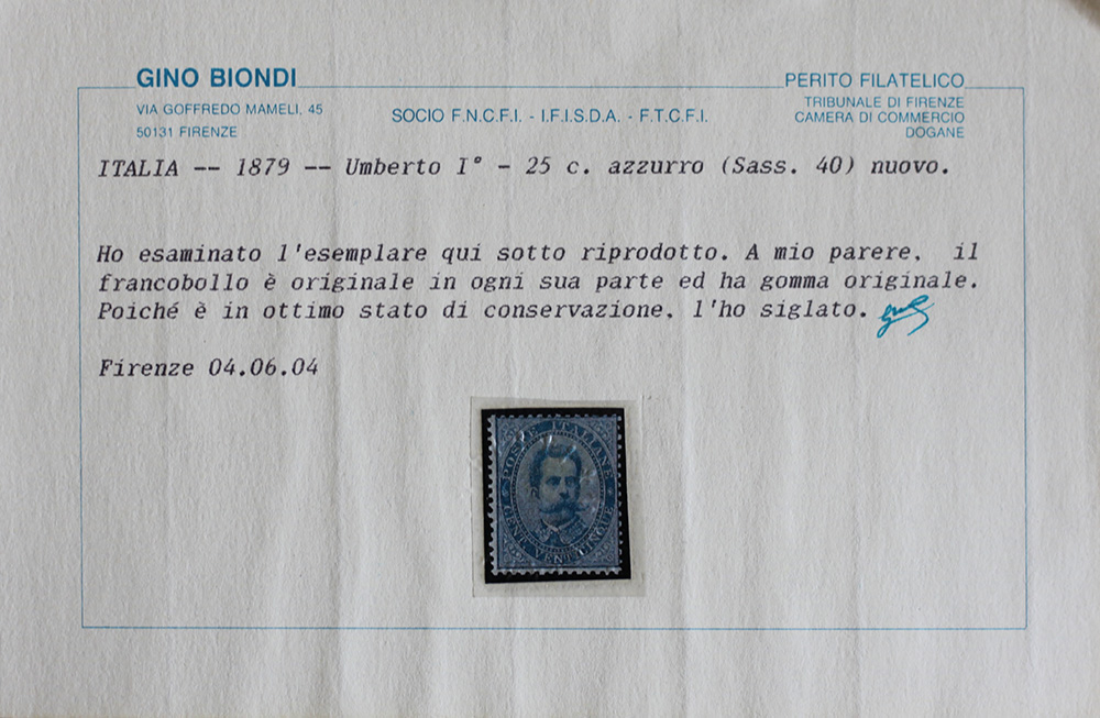 1879 num.40 linguellato, certificato Biondi Prezzo di catalogo : 500 €
