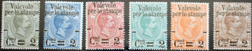 1890 sei valori, valevole per le stampe, senza linguella Prezzo di catalogo :...