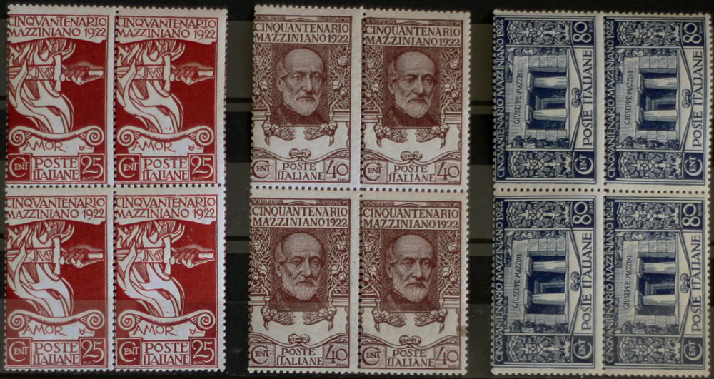Lotto 185 | 1922 num.128-130 in quartine senza linguella Prezzo di catalogo : 650 €