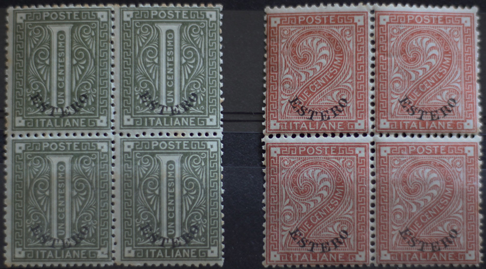 1874 Levante-Emissioni generali num.1,2 in quartina senza linguella con discreta centratura Prezzo di catalogo : 1.450 € +