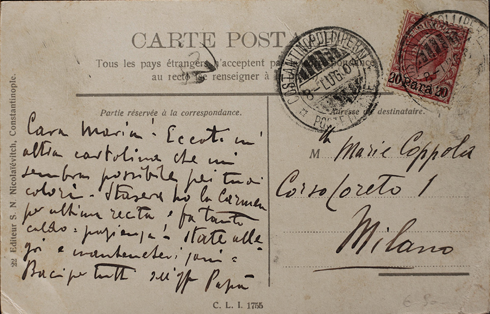 1907 Albania num.11 usato su cartolina con timbro di Costantinopoli Prezzo di catalogo : 200 €