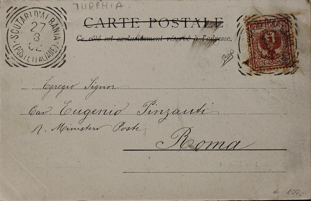 1902 Scutari d'Albania francobollo di Italia num.69 su cartolina con annullo dell'ufficio postale di Scutari Prezzo di catalogo : /