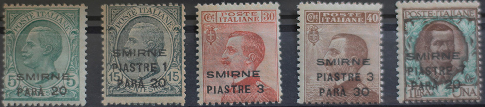 1909/11 Smirne num.9-13 senza linguella Prezzo di catalogo : 125 €