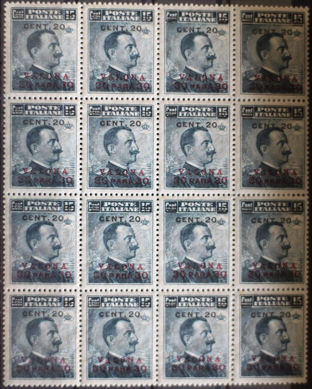 Lotto 424 | 1916 Valona num.10 blocco di 16 senza linguella Prezzo di catalogo : 120 €+