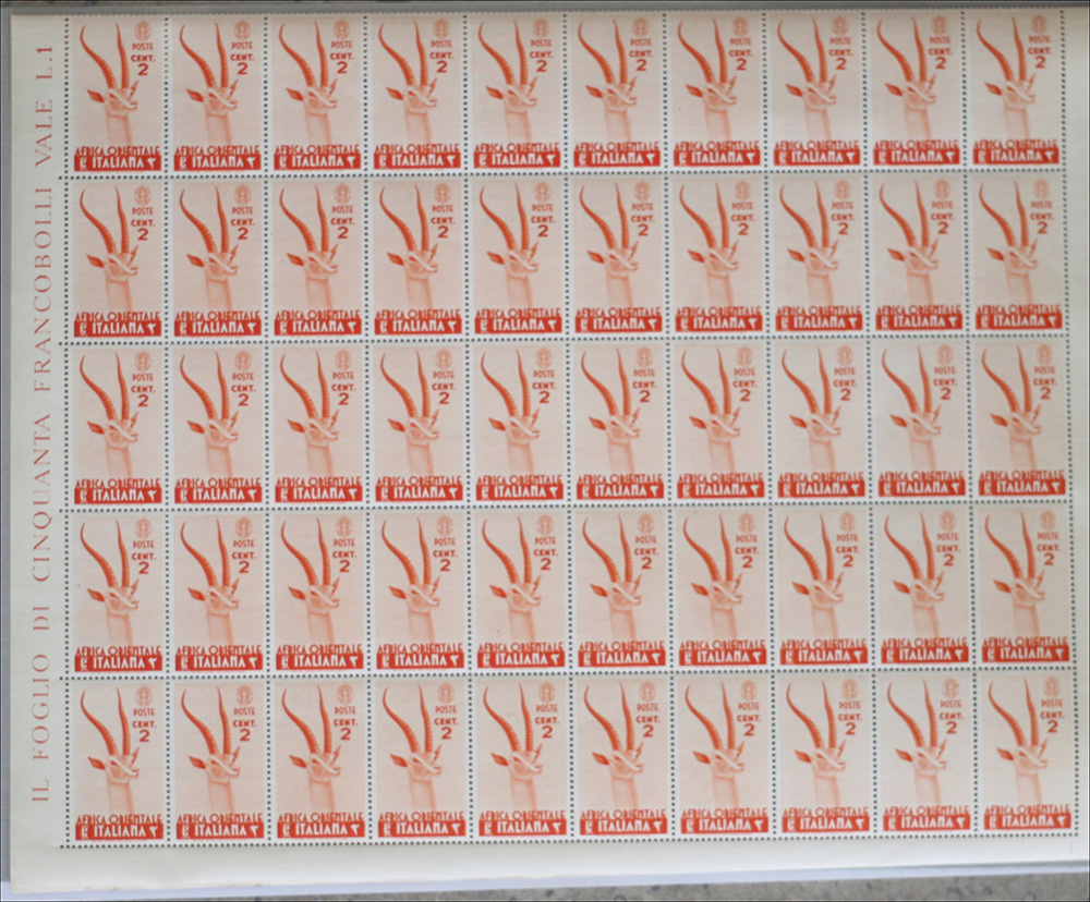 Lotto 442 | 1938 Africa orientale italiana num.1 foglio di 50 senza linguella Prezzo di...