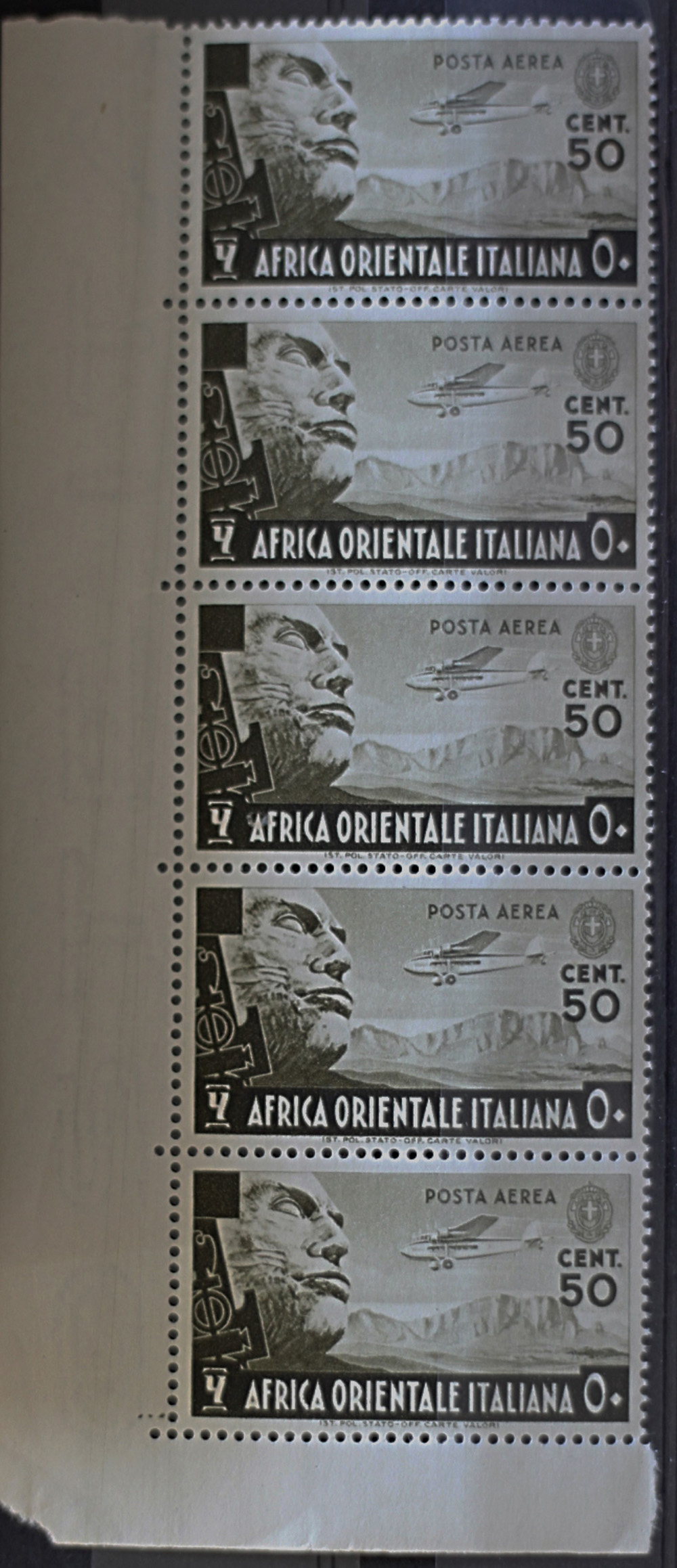 1938 Africa orientale italiana posta aerea 2 in striscia di 5 angolo di...