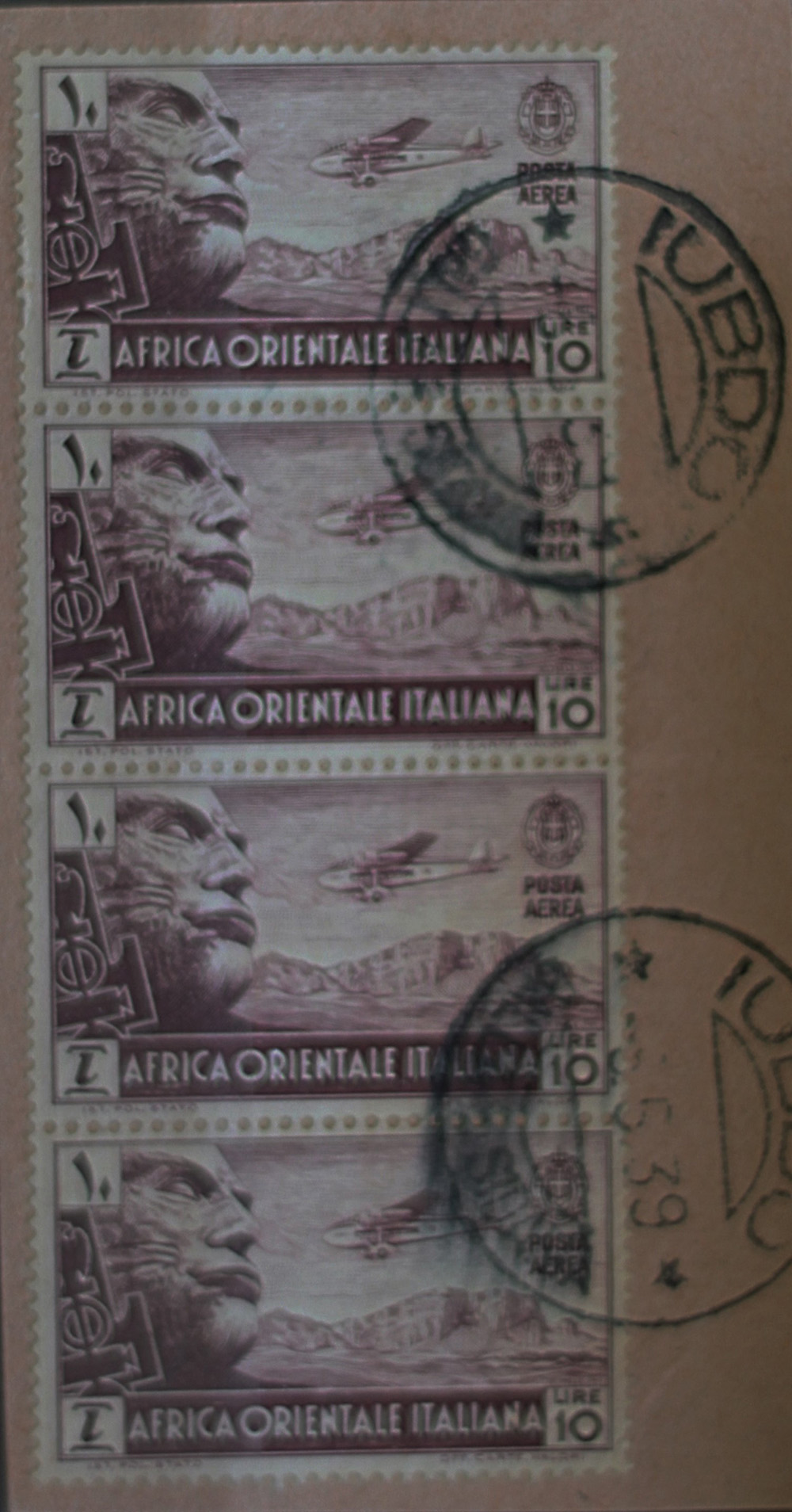 1938 Africa orientale italiana posta aerea 10 usato su frammento in striscia di 4 Prezzo di catalogo : 72 € +