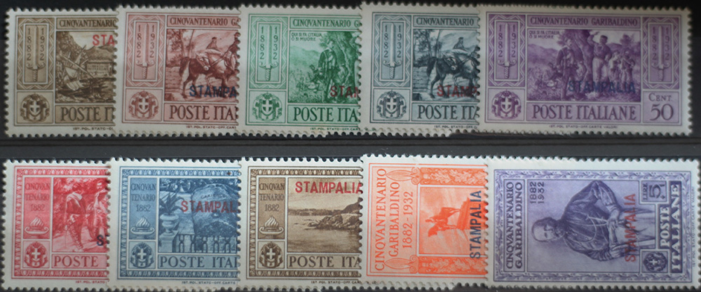1932 Stampalia num.17-26 linguellati Prezzo di catalogo : 220 €