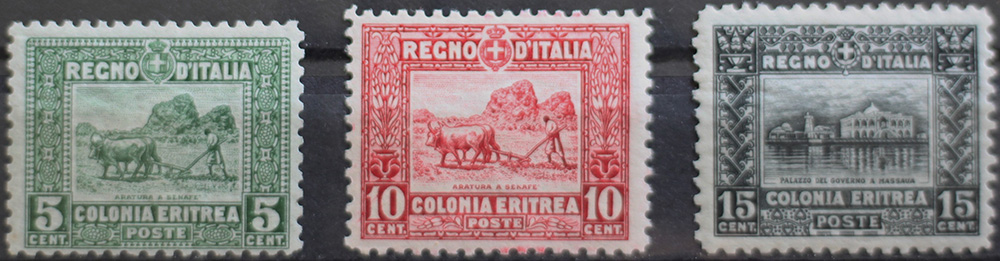 Lotto 507 | 1928/29 Eritrea num.129-131 senza linguella Prezzo di catalogo : 1.125 €