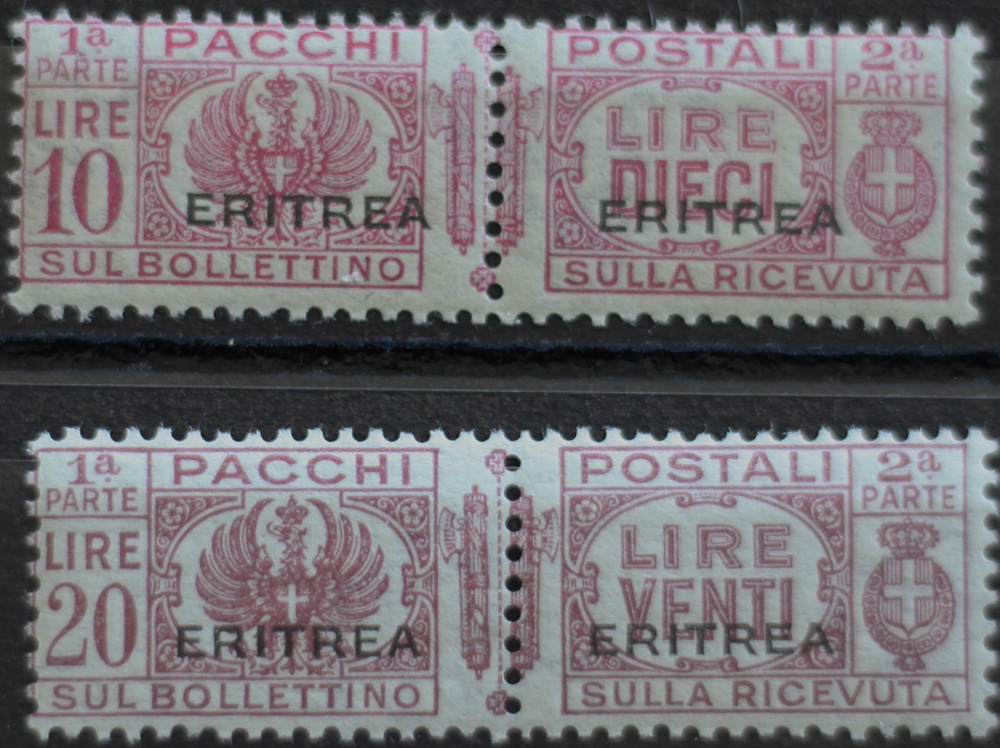 1927/37 Eritrea pacchi postali num.31-32 senza linguella Prezzo di catalogo : 2.800 €