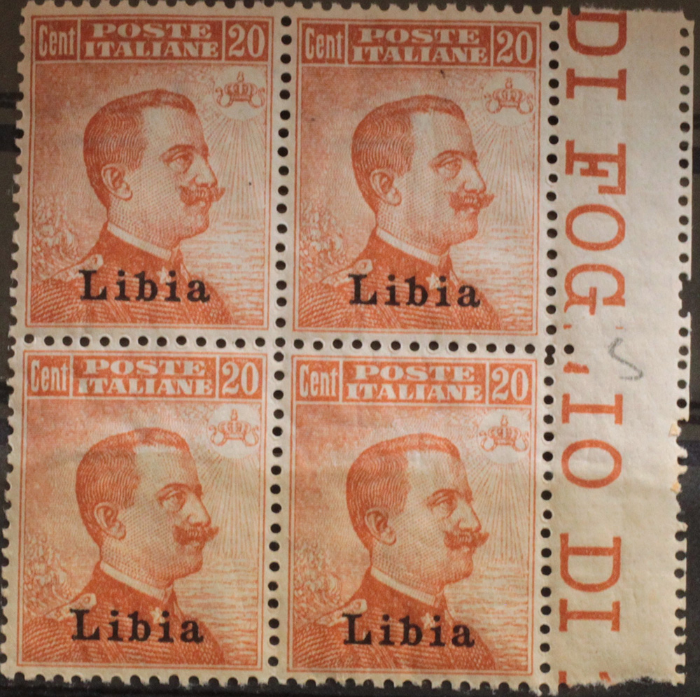 1918 Libia num.20 in quartina ben centrato senza linguella Prezzo di catalogo : 200 € +