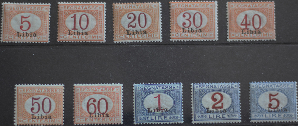 1915 Libia segnatasse num.1-10 senza linguella Prezzo di catalogo : 550 €