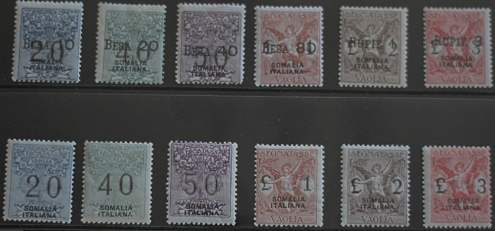 1924/26 Somalia segnatasse per vaglia num.1-12 senza linguella Prezzo di catalogo : 1.500 €