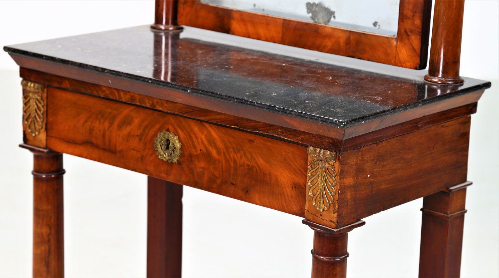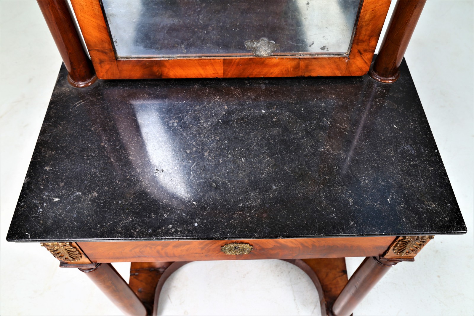 FRANCIA, XIX SECOLO Toilette lastronata e decorata con bronzi dorati, piano in marmo. . Cm 68,00 x 136,00 x 39,00.