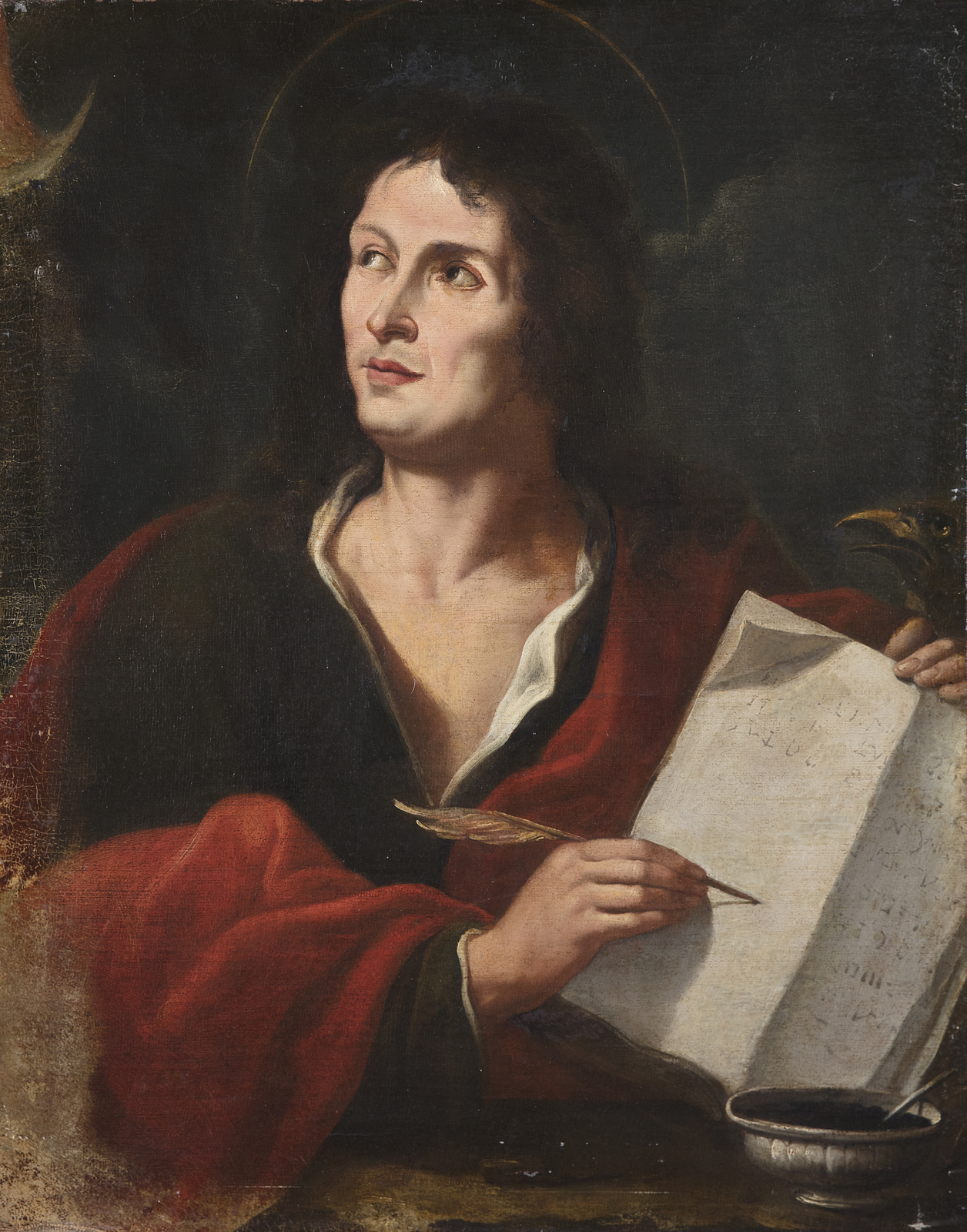 ARTISTA DEL XVII SECOLO San Giovanni evangelista. Olio su tela . Cm 73,50 x 94,00.