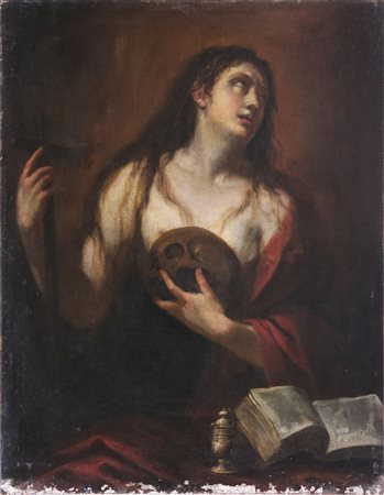 PITTORE GENOVESE DEL XVII SECOLO Maria Maddalena Penitente. . Olio su tela . Cm 98,00 x 122,00.