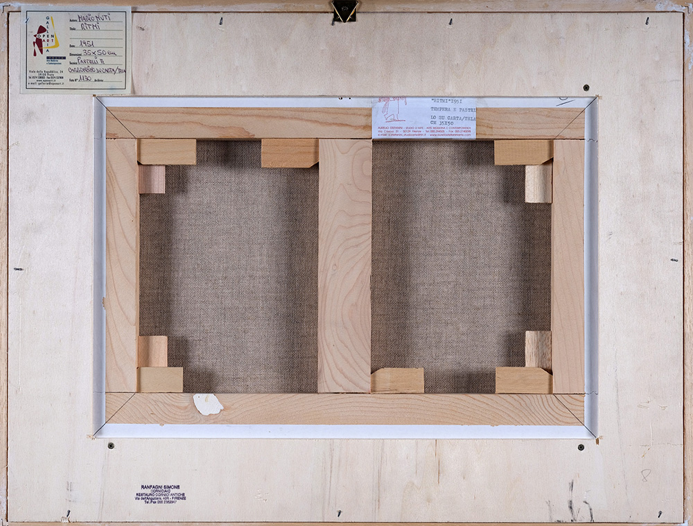 MARIO NUTI 1923 - 1996 Ritmi, 1951 Pastello e carboncino su carta telata, cm. 35 x 50 Firmato e datato in basso a sinistra Etichetta Galleria Open Art, Prato sul retro Etichetta Aurelio Stefanini - Studio d’Arte, Firenze sul retro PUBBLICAZIONI: “L’arte come testimonianza civile. Mario Nuti - Opere (1948-1963)”, Galleria Open Art, Carlo Cambi Editore, 2014, p. 45 “Mario Nuti”, Galleria Open Art, Masso delle Fate Edizioni, 2006, p. 71 Prov. Collezione Privata