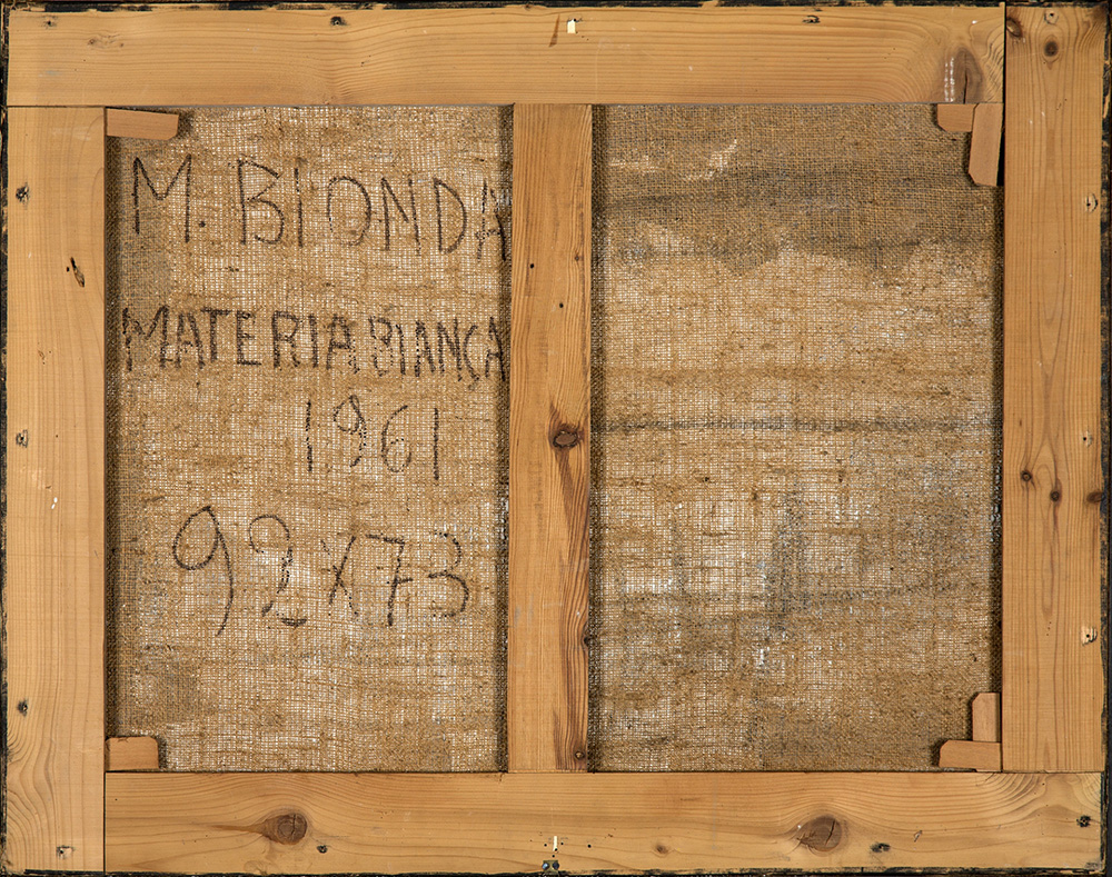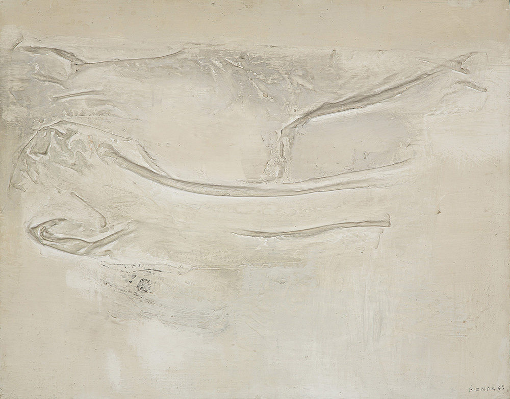 MARIO BIONDA 1913 - 1985 Materia Bianca, 1962 Caolino e olio su tela, cm. 73 x 92 Firmato e datato in basso a destra Prov. Collezione Privata