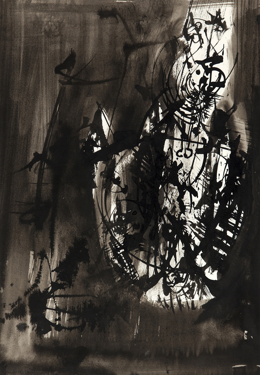GIO POMODORO 1930 - 2002 Sterpaglie, 1956 Inchiostro di china su carta, cm. 50 x 70 Firmato e datato in basso a destra Autentica dell’artista su fotografia Prov. Collezione Privata