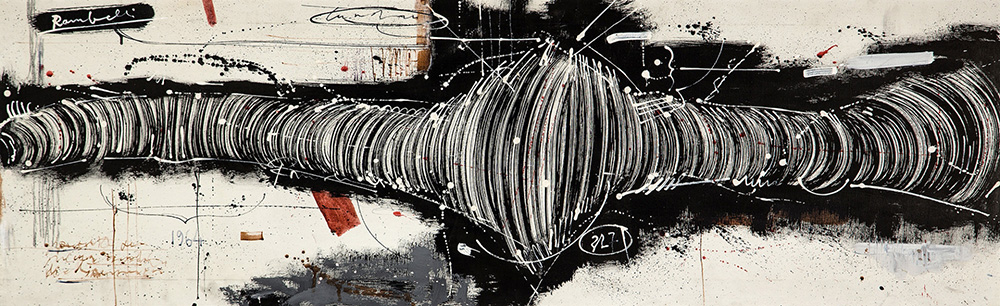 AMILCARE RAMBELLI 1924 - 1976 Senza titolo, 1964 Tecnica mista su tela, cm. 43 x 138 Firmato in alto a sinistra Prov. Collezione Privata