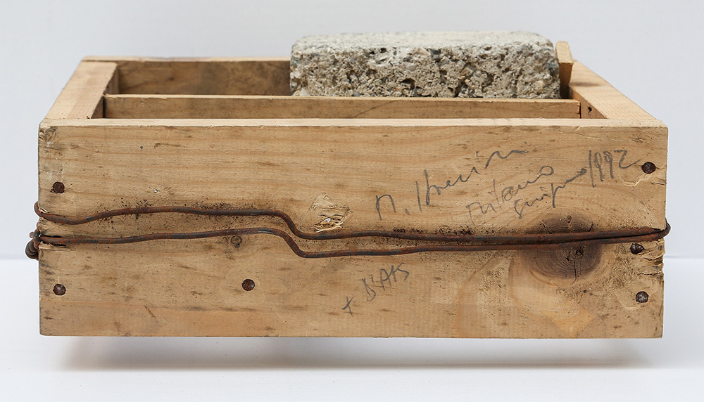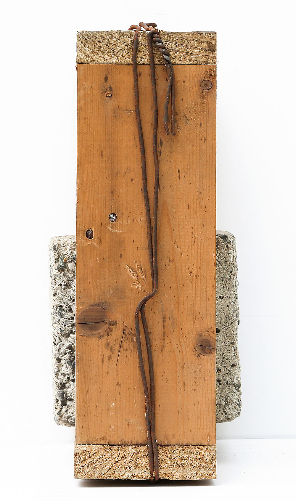 MAURO STACCIOLI 1937 - 2017 Senza titolo, 1992 Assemblaggio in legno, cemento e filo di ferro, cm. 35 x 31 x 15 Firmato e datato in alto Dedica dell’artista alla Fondazione D’Ars, Milano Opera in fase di archiviazione presso l’Archivio Mauro Staccioli Prov. Collezione Privata