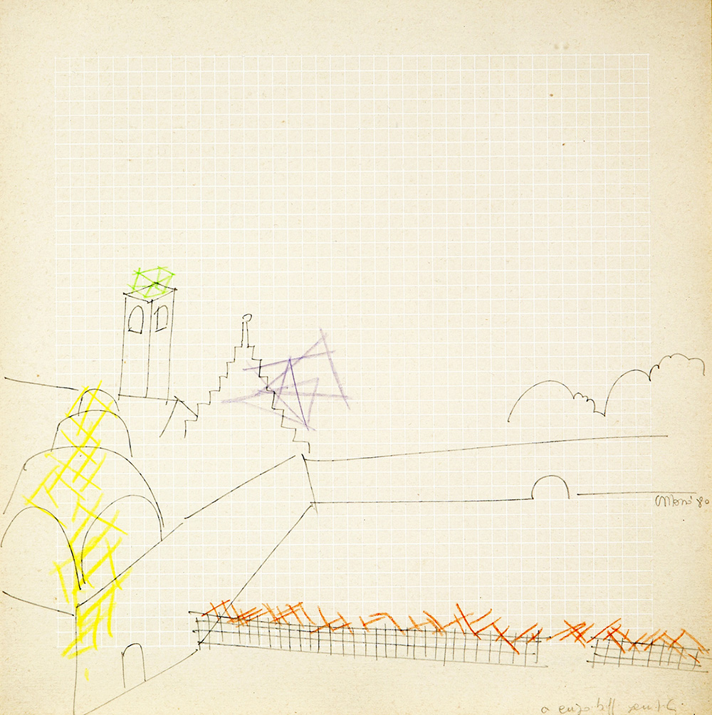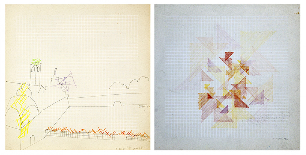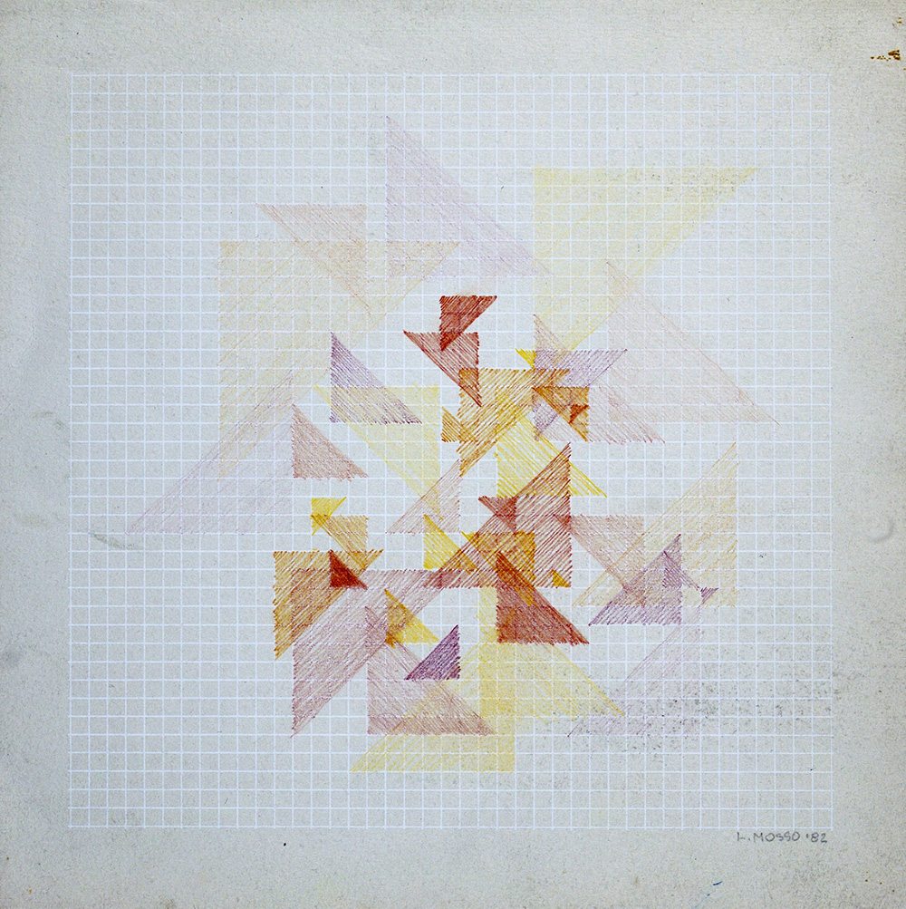 LEONARDO MOSSO 1929 LOTTO DI 2 OPERE Senza titolo, 1980 Grafite e matite colorate su carta quadrettata, cm. 25 x 25 Firmato e datato in basso a destra Dedica dell’artista in basso a destra Prov. Collezione Privata Senza titolo, 1982 Matite colorate su carta quadrettata, cm. 25 x 25 Firmato e datato in basso a destra Prov. Collezione Privata