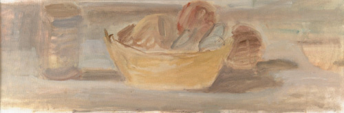 Mario Marcucci (Viareggio, 1910 - 1992) Natura morta con cesto Olio su tela riportata su tavola, cm. 25x75 Firma in basso al centro. € 1.000/1.100