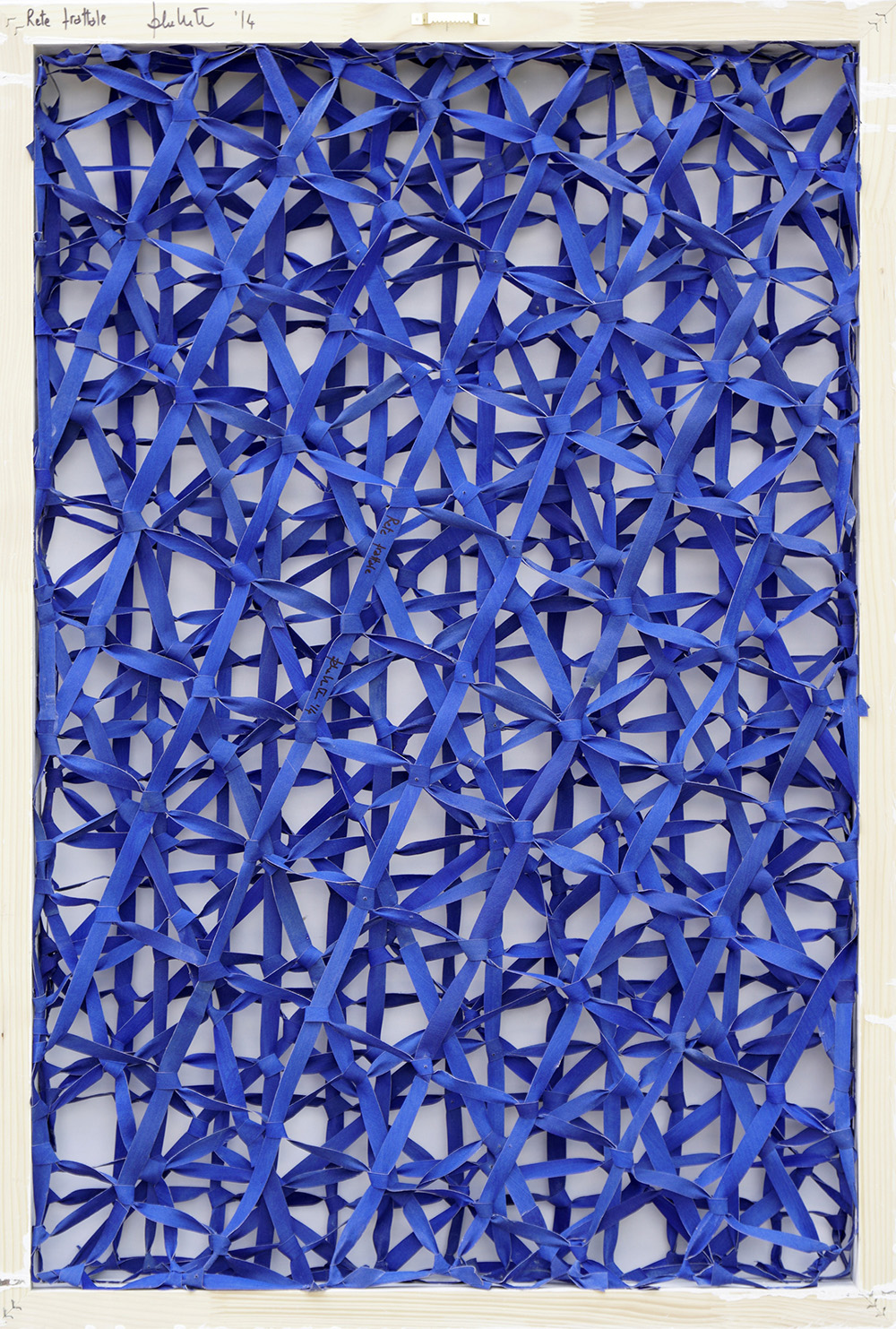 FERNANDO GARBELLOTTO 1955 Rete frattale, 2014 Tela tagliata e annodata montata su telaio, cm. 96 x 65 Firmato e datato sul retro PUBBLICAZIONI: “Fernando Garbellotto - reti frattali”, Dario de Bastiani editore, Vittorio Veneto, 2018, p. 37 Prov. Collezione Privata