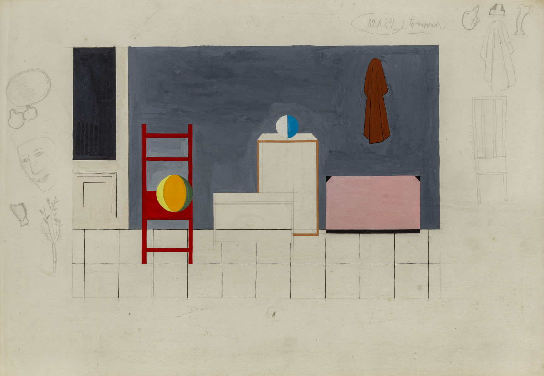 ATANASIO SOLDATI (1896 - 1953) Interno con sedia e pallone Anni '40 Tecnica...
