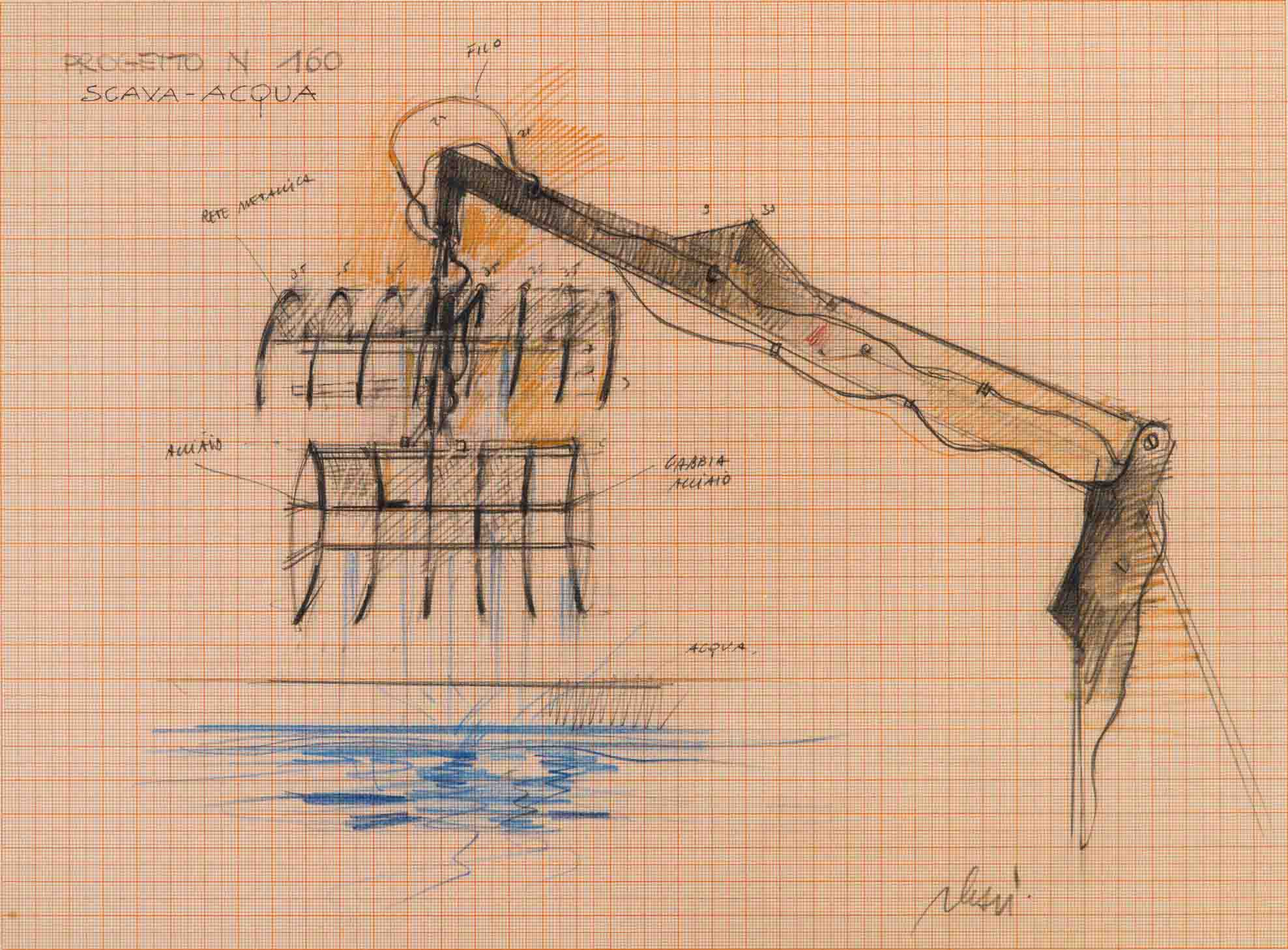 FABRIZIO PLESSI (1940) Progetto n. 160. Scava-acqua 1970 Tecnica mista su...