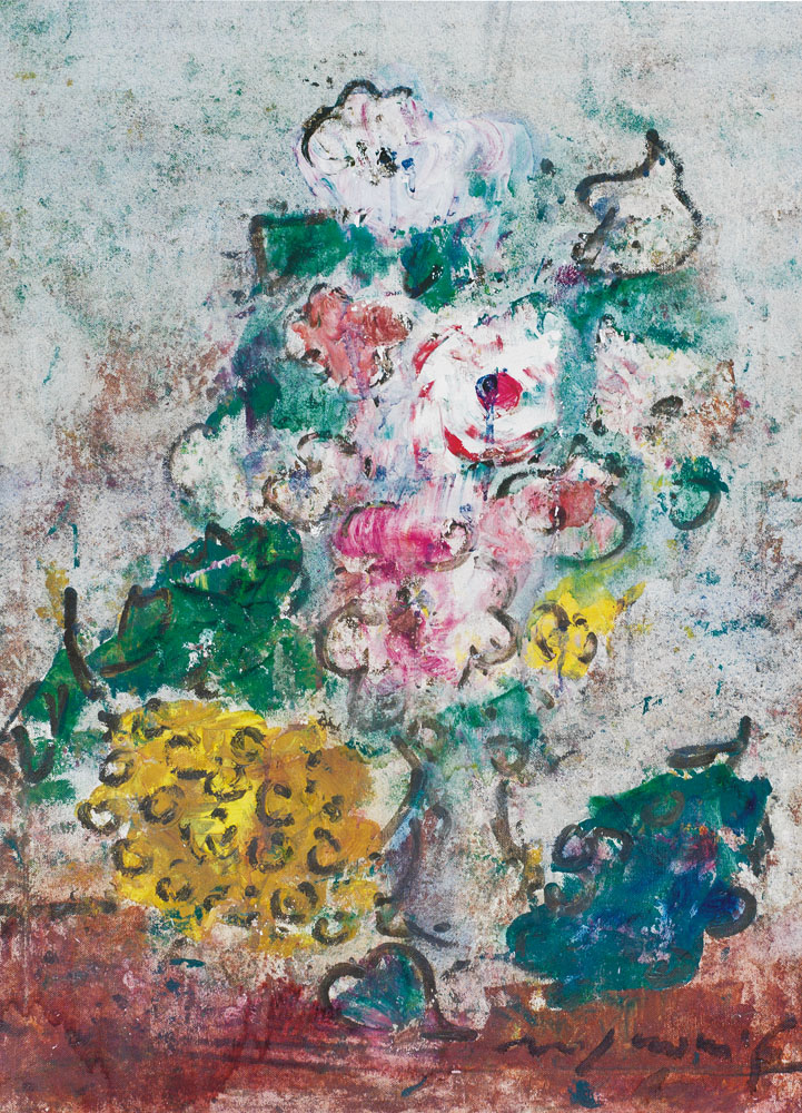 FRANCO ROGNONI Milano 20/09/1913 - Milano 11/03/1999 - Vaso di fiori, olio su tela applicata su cartone cm. 70x50, firma in basso a destra, dichiarazione d'autenticità della moglie Mariuccia Rognoni Noè su foto.