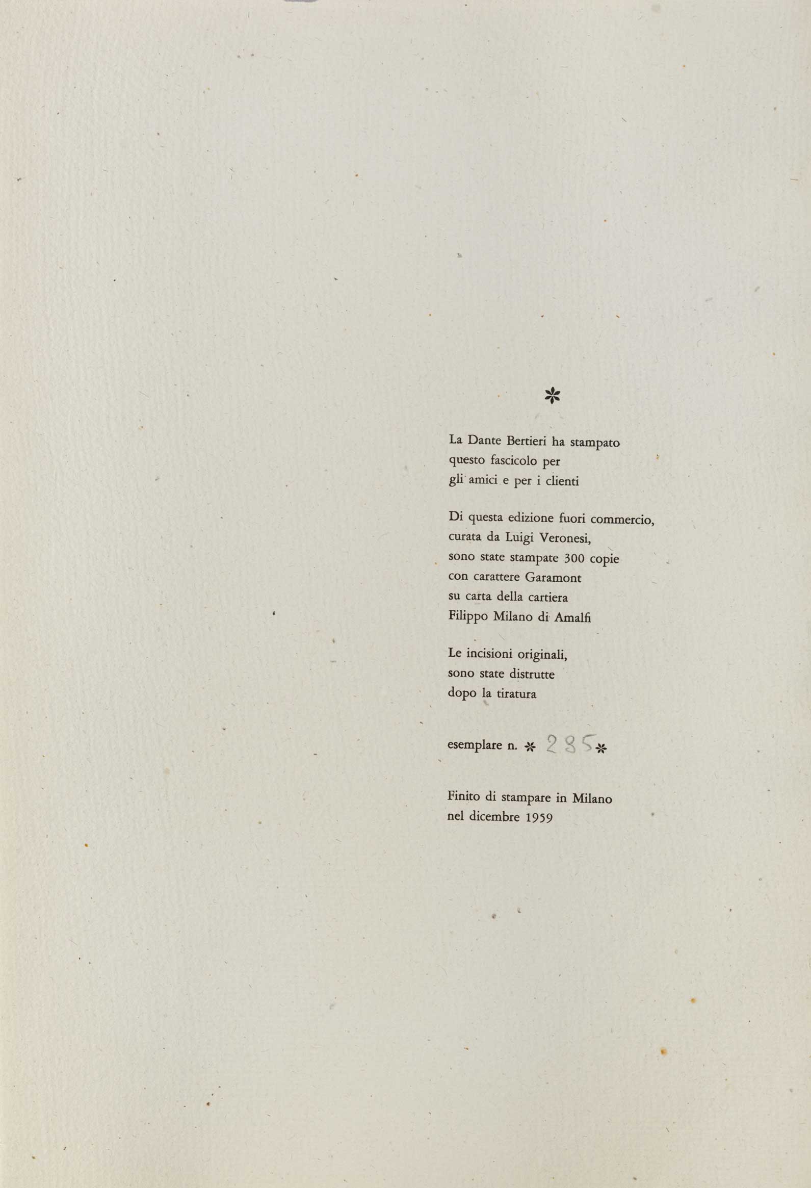 Libro d'artista contenente 5 incisioni, ess. 285/300, Edizioni Dante Bertieri, Milano