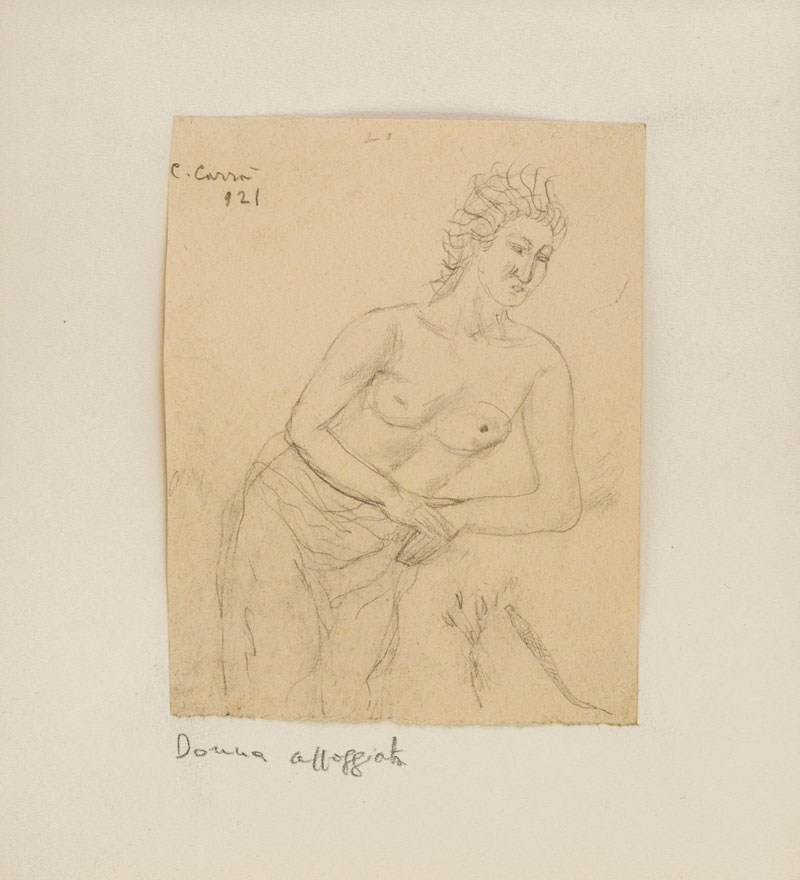 CARLO CARRÀ (1881 - 1966) Donna appoggiata 1921 Disegno a matita su carta...