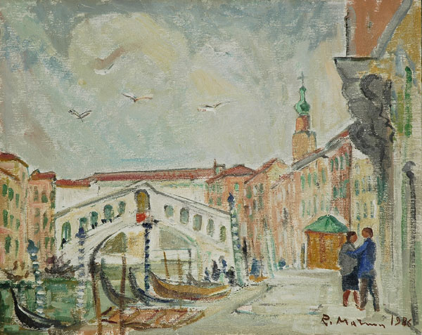 Rodolfo Marma (Firenze, 1923 - 1998) Venezia, 1986 Olio su tela, cm. 40x50 Firma e data in basso a sinistra; firma e titolo sul verso. € 600/800