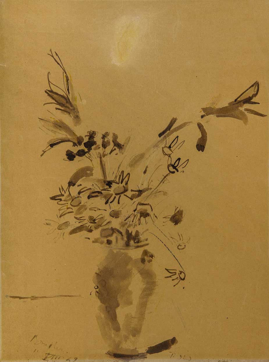 FILIPPO DE PISIS (1896 - 1956) Vaso di fiori 1949 China acquarellata su carta...