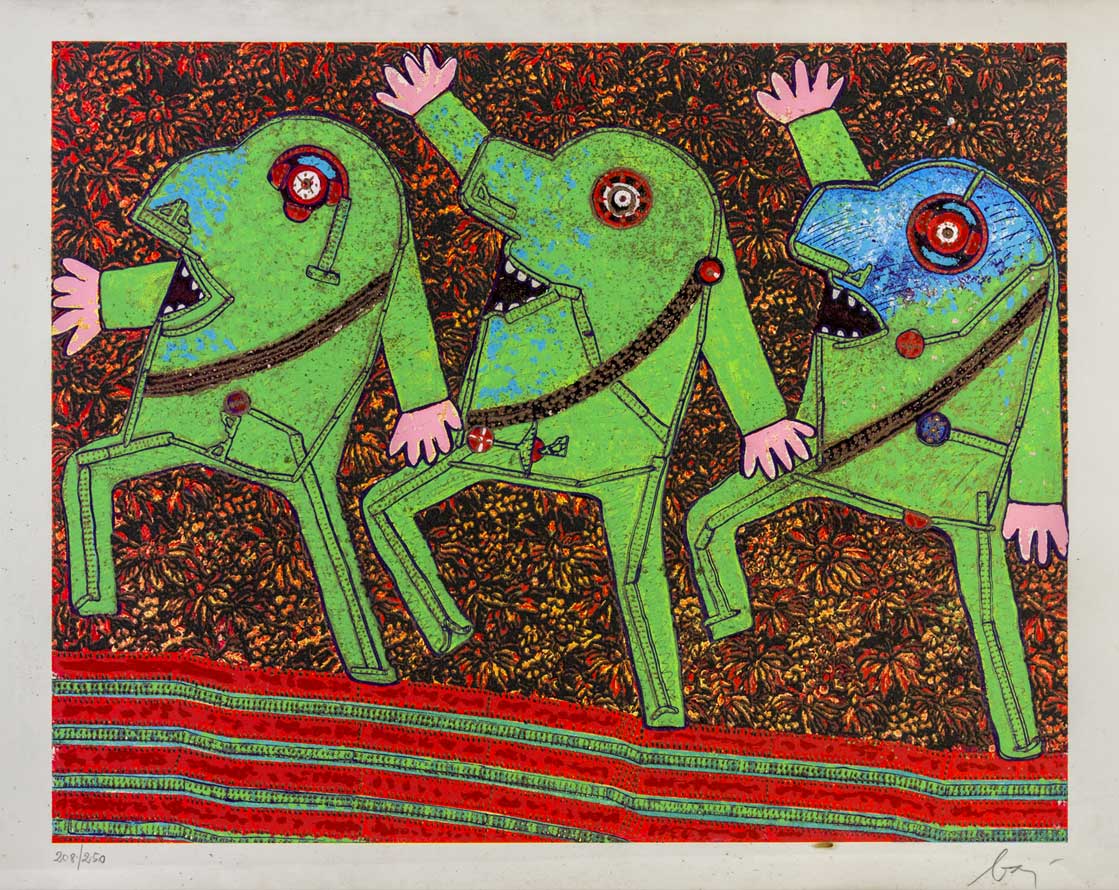 ENRICO BAJ (1924 - 2003) Contaminazioni Serigrafia con collage polimaterico,...