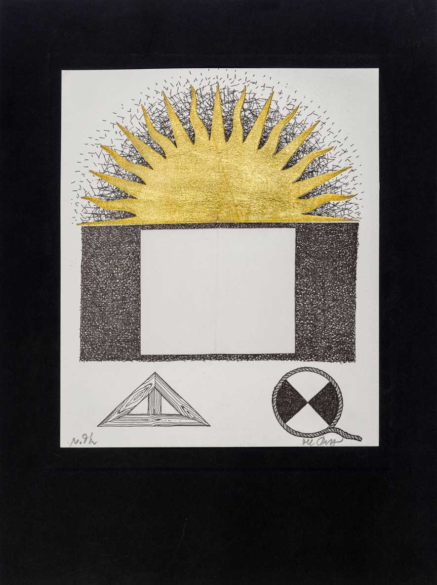 Acquaforte e calcografia con applicazione a mano di foglia d'oro, es. p.d.a.
