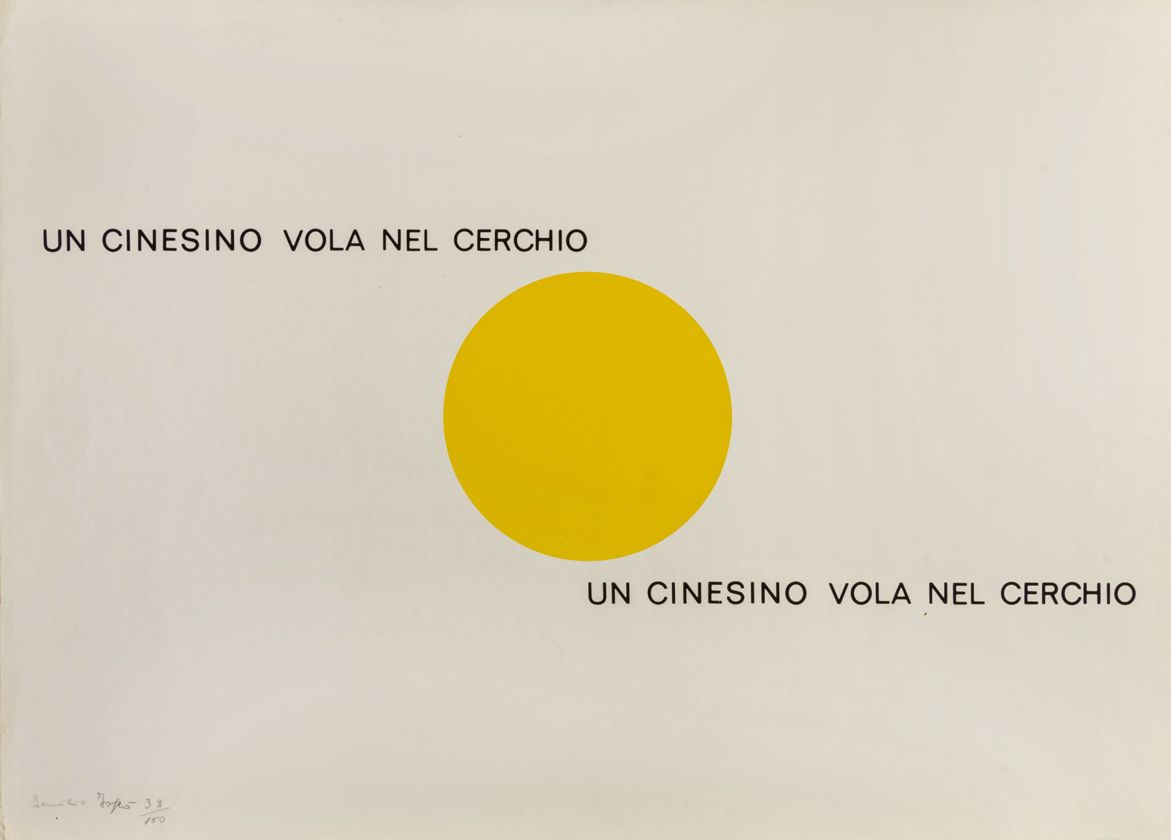 Il lotto è composto da due serigrafie, 'Attila', 1966, 'Cinesi', 1968, ess. 38/150, facenti parte della cartella 'Poesie visive e cancellature', Edizione Peruz Editore, Milano