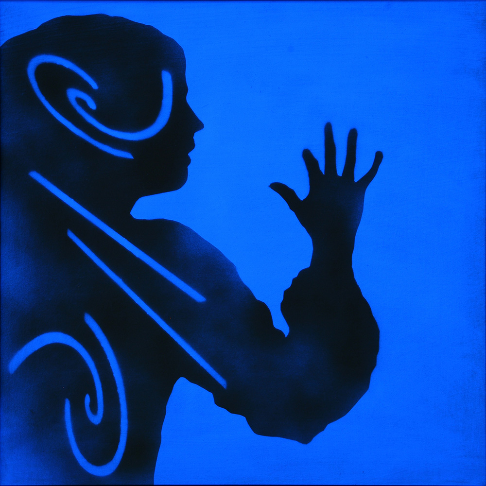 Raimondo Galeano Catanzaro 1948 Navigatori del cosmo blu. Unico livello 2008 Luce su tela 50x50 Certificato di autenticità