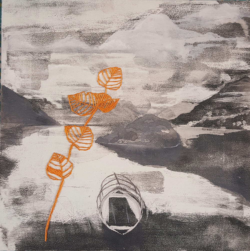 Nataliya Teslenko Turkmenistan 1981 Isola Comacina 2018 Tecnic mista: tempera, china, filo di cotone su tela 30x30 Certificato di autenticità