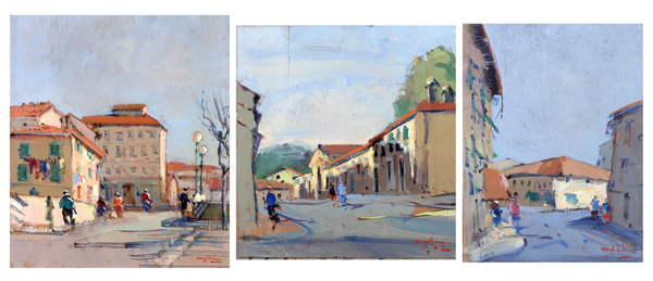 Franco Mazzacherini (Livorno, 1940) Paesaggi Olio su tavola, cm. 28,5x27; cm. 33,5x25,5; cm. 40,5x35 Lotto composto da tre dipinti, firmati. € 0/0