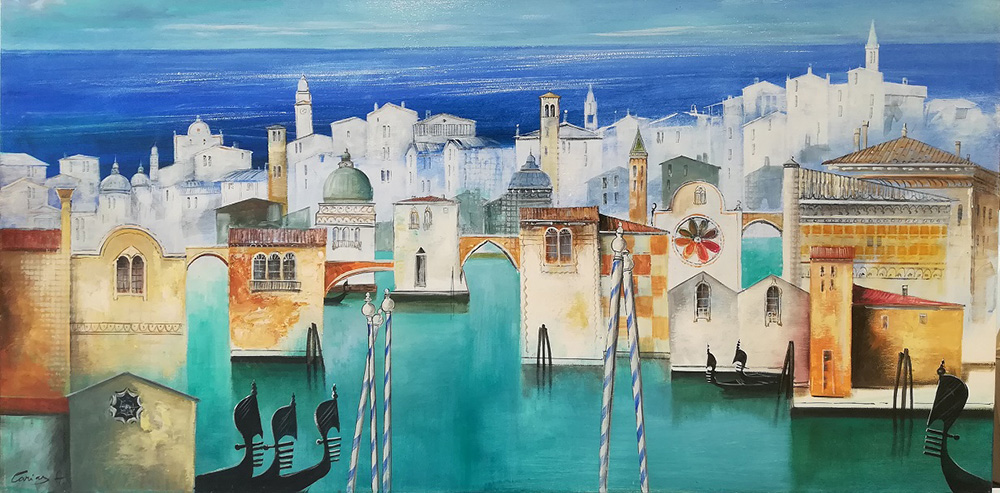 Antonio Carias Verona 1973 Venezia Olio su Tela 60x120 Certificato di autenticità