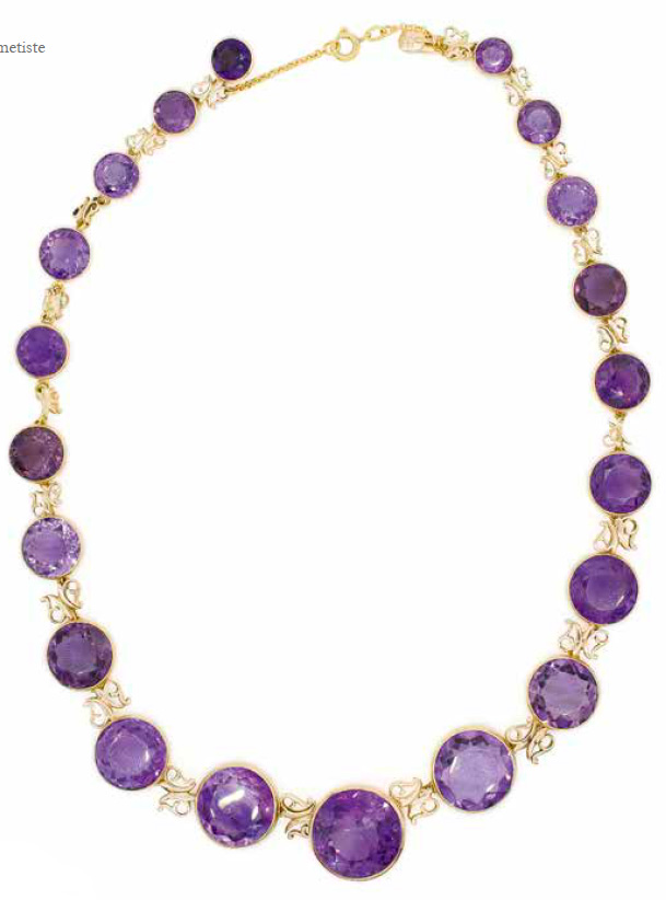 Collier in oro rosa, gr. 64,07, con ametiste del peso complessivo di ct. 35 ca.