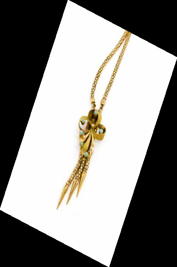 Lotto 57 | Parure in oro giallo e turchesi composta da collier, gr. 25,5, e anello, gr 5,8.
