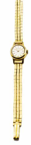 Orologio da donna Jaeger Lecoultre, quadrante con indici applicati in oro, lancette a bastone, bracciale a fili in oro giallo