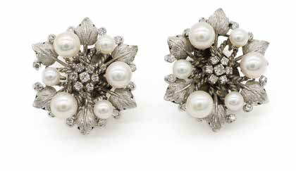 Orecchini in oro bianco, gr. 31,30, con perle e diamanti del peso complessivo...