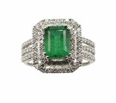 Anello in oro bianco, gr. 7,8, con diamanti del peso complessivo di ct. 0,95 ca. e smeraldo ct. 2,15 ca.