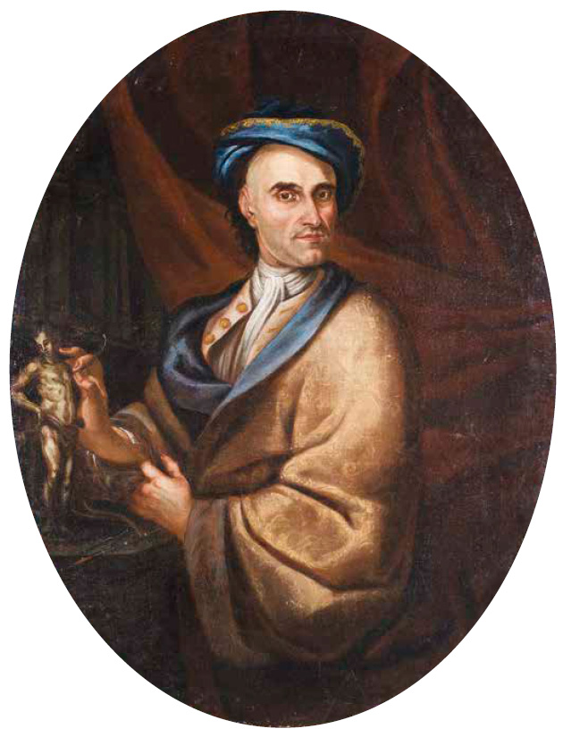 Scuola Lombarda fine del XVII secolo RITRATTO DI SCULTORE olio su tela, cm 110x86
